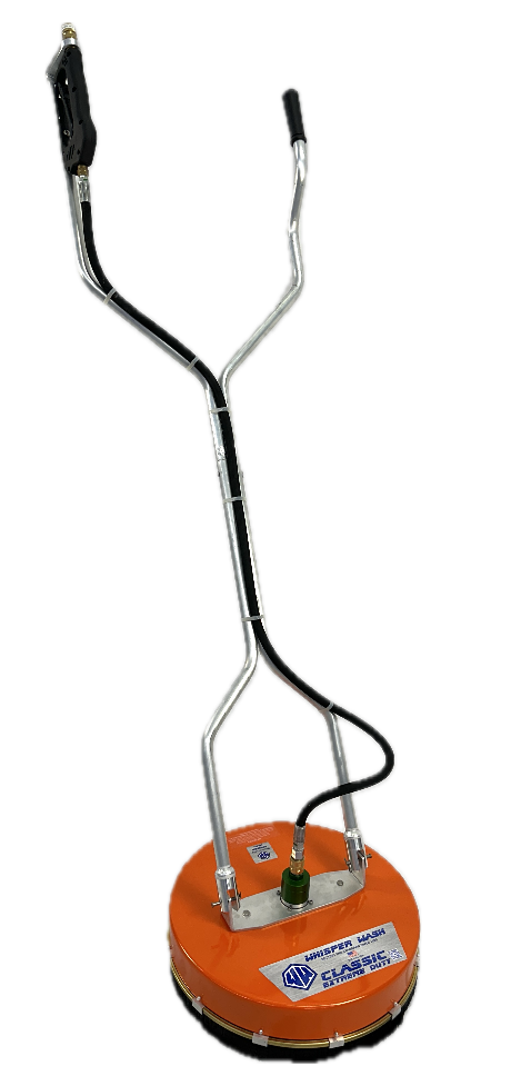 The Whisper Wash Classic is equipped with a durable nylon skirt, 4,000 psi rotary head rated to 212°F and flows to 10gpm. The heavy-duty arms spin at speeds up to 2500 rpm for even and fast cleaning. Handle is detachable and the unit comes with 4 each 2502 nozzles.