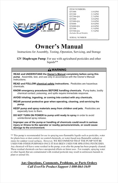 EF2200 Everflo 12V Diaphragm Pump Specifications