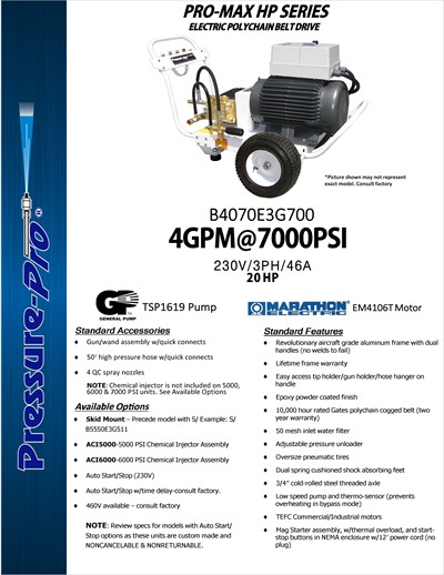 Pressure Pro Pro-Max HP series 230v ELECTRIC Polychain Drive B4070E3G700