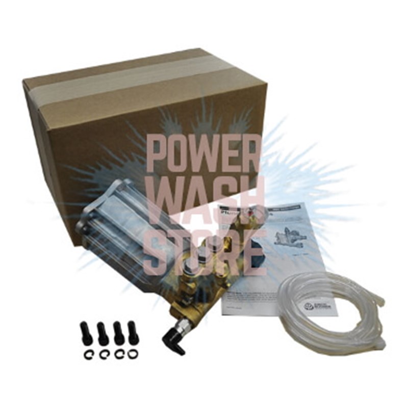 Annovi Reverberi AR RMV25G30D-EZ-PKG with a thermal relief valve and a detergent tube with a filter. 2.5 GPM at 3,000 PSI, spins at 3,400 RPM in a direct drive system coupled with a gasoline engine. Economy Axial Radial Drive Pump.
