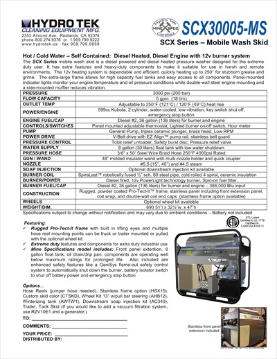 SCX Series Hydro Tek Hot Water Diesel Skid 5.0@3000 #SCX30005-MS