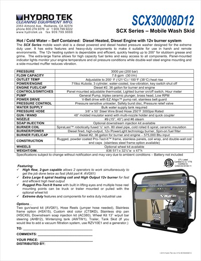 SCX Series 12v Hydro Tek Hot Water Diesel 7.8@3000 #SCX30008D12