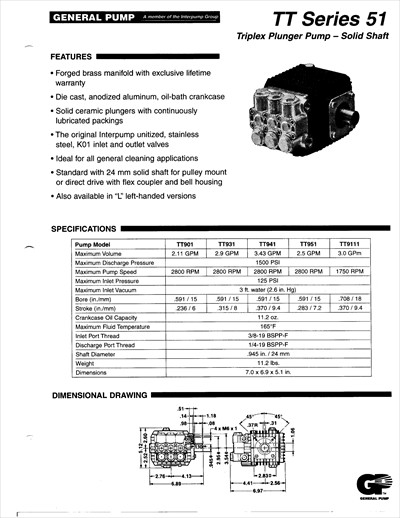 General Pump 51 Series 2.9gpm@1500psi #TT931