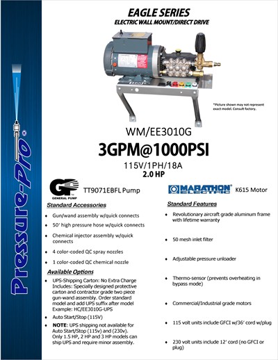 Pressure Pro Eagle Series 115v ELECTRIC Direct Drive wall mount WM/EE3010G