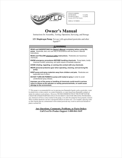 - The EF7000QC Everflo 12 volt pump has a Quick Connect feature for easy and convenient attachment.