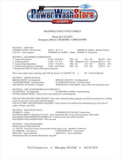 - EZ Safe Strip is a custom blend of non-caustic cleaners that will lift and soften the stains and sealers on the surface of the deck. The unique surfactant blend is strong enough to do the job yet still safe enough to handle.