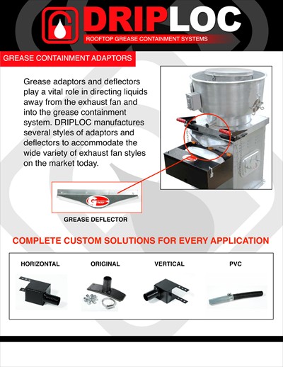 The Horizontal Drain Adaptor is used to adapt to various exhaust fans in the industry. For best results, grease should be directed to fall into the middle of the filter/pillow. The adapter 𝐒𝐮𝐩𝐩𝐨𝐫𝐭𝐬 allows grease to get past the fan base to hit into the grease containment system.
