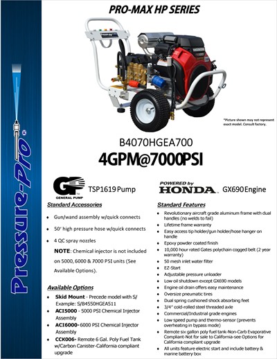 Pressure Pro Pro-Max HP series Pressure Washer B4070HGEA700