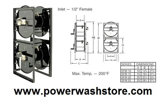 Hosetract hose reels have a stack capability with no added parts required. Holds 350' of 3/8" hose or 275' of 1/2" hose.