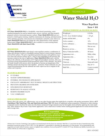 Water Shield HโO is a water-based, penetrating water-repellent designed to be used on most properly prepared concrete or masonry surfaces, as well as roof tiles. Water Shield HโO will create a hydrophobic barrier while still ๐๐ฎ๐ฉ๐ฉ๐จ๐ซ๐ญ๐ฌ allowing for full breathability to dis๐๐ฎ๐ฉ๐ฉ๐จ๐ซ๐ญ๐ฌ allow any intrusion of water or contaminates carried by water to enter the substrate.