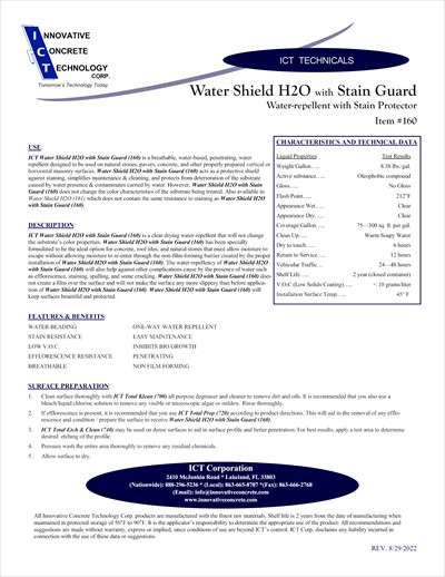Water Shield HโO and Water Shield HโO with Stain Guard are salt and chemical resistant, low VOC, versatile, and user-friendly.