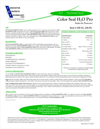 - Color Seal H₂O Pro is our signature water-based color sealers