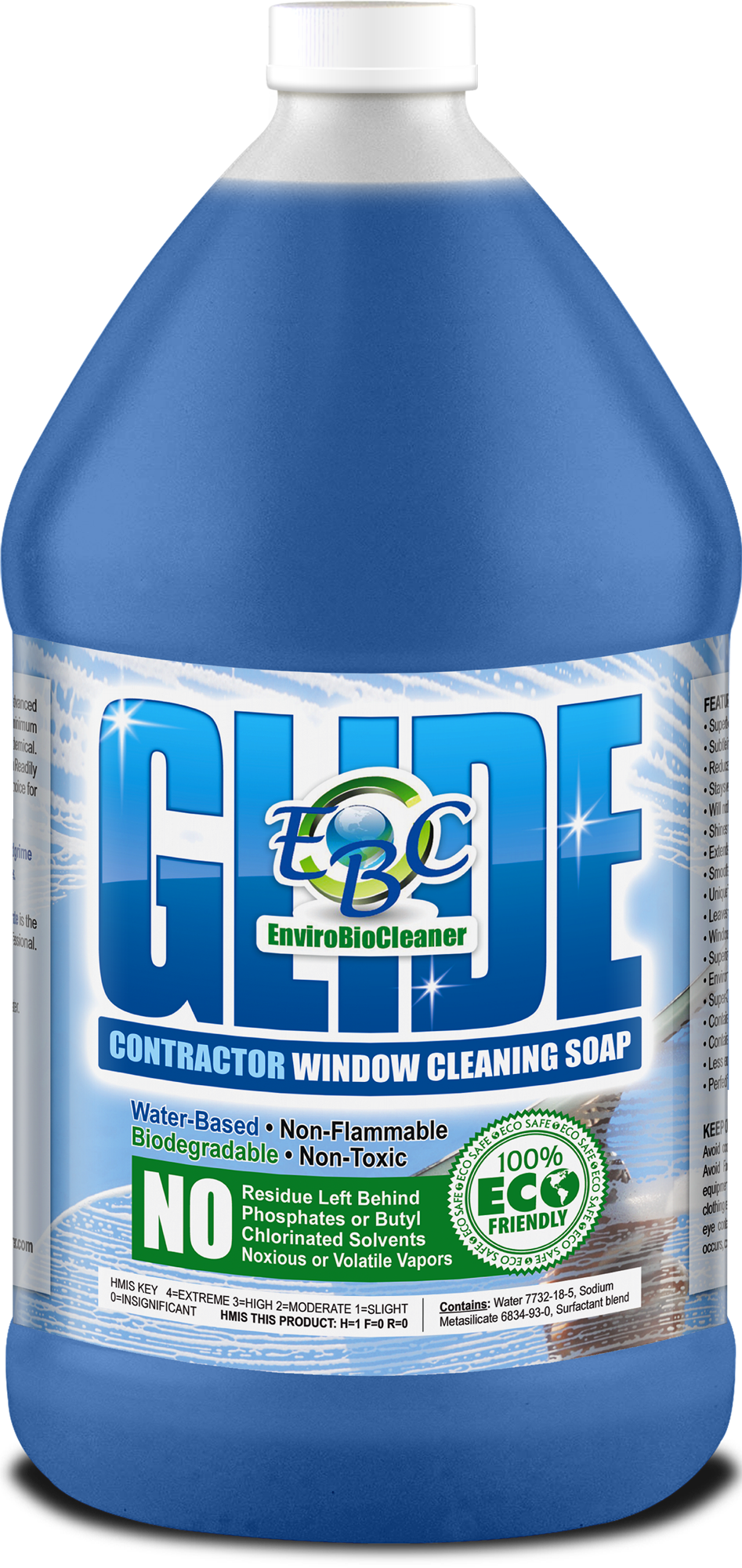 Readily biodegradable surfactants make EBC Glide Window Cleaner the perfect choice for your window cleaning needs.