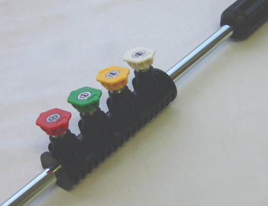 The Suttner nozzle holder for lance holds 4 of your most commonly used 1/4" quick connect nozzles for quick, handy, easy access!