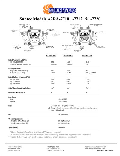Suntec fuel pump model A2RA7710. Fuel solenoid is sold separately.